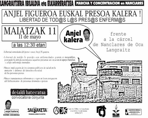 Anjel Figueroa Fernandez es un prisionero político vasco; nacido en 1971 en Algorta, un barrio de Getxo (Bizkaia), Euskal Herria. Está preso en el estado español desde el año 1994, más de 13 años. Sufre una enfermedad neurológica que durante su encarcelamiento ha degenerado en epilepsia y esclerosis mesial, ambas enfermedades crónicas e incurables. Desde el año 2005 Anjel sufre violentos ataques epilépticos con perdida de conciencia. En 2006 fue operado, pero su situación continuó empeorando, con 20 crisis epilépticas cada vez más violentas. En julio del año 2007 el Juzgado de Vigilancia Penitenciaria Central con sede en la Audiencia Nacional de Madrid rechazó la solicitud de libertad condicional de Anjel por la enfermedad grave e incurable que padece (como establece el articulo 92 del Código Penal español).