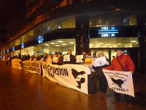 pertsona elkartu dira Iruñean, PPren egoitzaren aurrean, Euskal preso politikoak