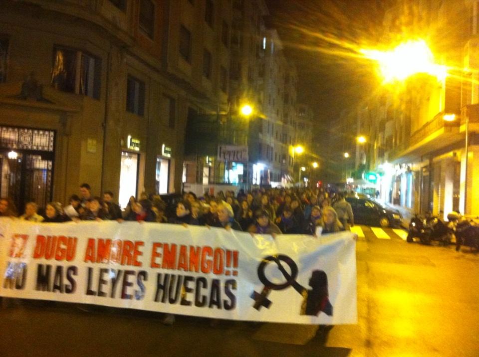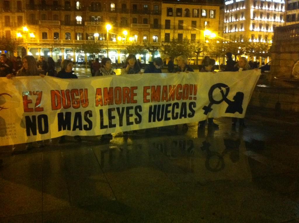 Centenares de personas se manifestaron ayer por el centro de Iruña con el lema "No mas leyes huecas, ez dugu amore emango".