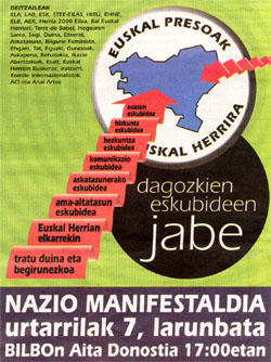 •Llamamos a participar, de un modo especial, en las concentraciones que ETXERAT (Asociaiciòn de familiares de presas y presos y exiliadas y exiliados politicos vascos) convoca el último viernes de cada més en pueblos y ciudades de Euskal Herria.