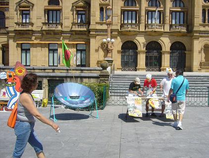 Mediante una cocina solar, se ha procedido a elaborar pintxos de chorizo que han sido repartidos entre las personas que transitaban por el lugar.