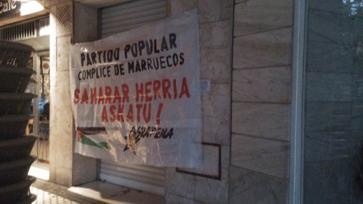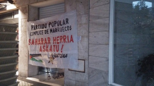 La tarde del 13 de Diciembre Askapena de Donostialdea ha realizado una acción en favor del Pueblo saharaui en la puerta de la sede del Partido Popular del barrio de Amara en Donostia.