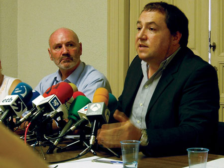 Pernando Barrena, dirigente de Batasuna, y Alex Maskey, miembro de la Ejecutiva del Sinn Féin, dieron ayer una rueda de prensa en Madrid, junto a Agustín Morán, miembro del CAES. En la comparecencia se analizó la situación de crisis que vive el proceso abierto en Euskal Herria, señalando la responsabilidad del gobierno español, y se reclamó la necesidad de reconocer al derecho a decidir de la ciudadanía vasca para que el proceso se desbloquee. [Fotos: La Plataforma]