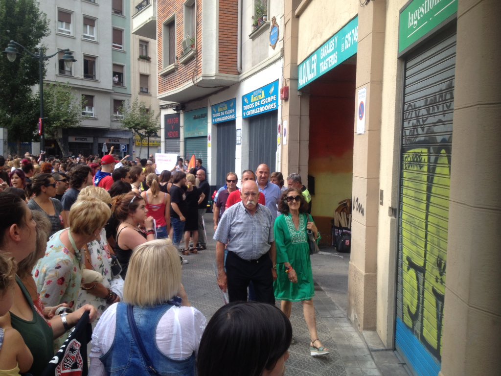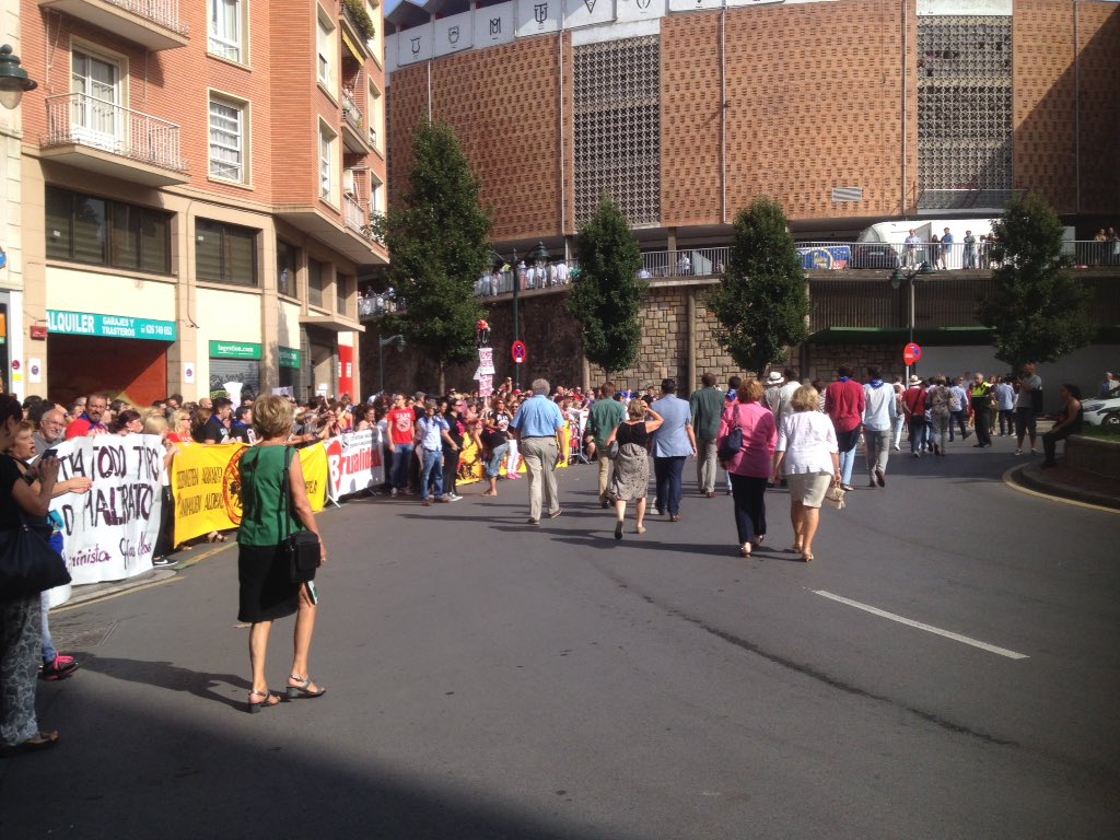 La tensión fue en aumento al ir pasando los aficionados taurinos al interior de la plaza, frente a las cientos de personas congregadas, varios de los taurinos rompieron en insultos e incluso intentos de agresión contra los manifestantes. Efectivos de la policía municipal y de la ertzaintza se posicionaron entre los dos grupos.