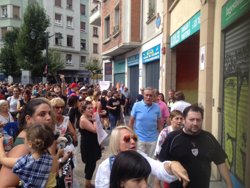 Varios cientos de personas participaron convocadas por distintas asociaciones, colectivos y partidos en la protesta contra las corridas de toros en Aste Nagusia de Bilbao. La movilización comenzó con una concentraión frente a la puerta de la plaza de toros de Vista Alegre sobre las 17:00h., un rato antes de que comenzará la corrida de toros del sábado grande de Aste Nagusia.