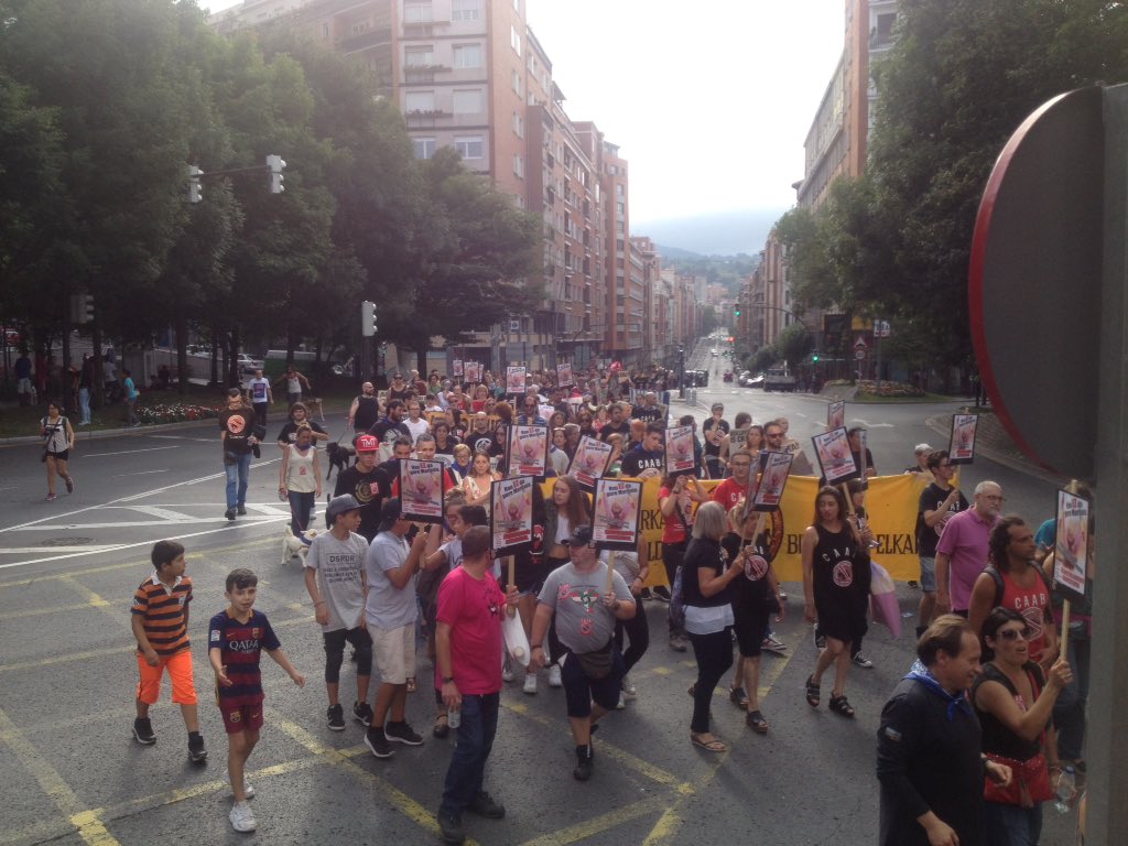 Una concentración frente a la plaza de toros de Vista Alegre y posterior manifestación por el centro de Bilbao tuvo lugar ayer por la tarde