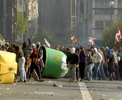 Mientras, la Policía se afanaba en sus cargas contra la multitud, identificando y deteniendo a un número indeterminado de personas. Fuentes de la Ertzaintza indicaron que eran dos las personas detenidas en el transcurso de los altercados, pero testigos presenciales afirmaron a este diario que el número podía ascender hasta la decena.