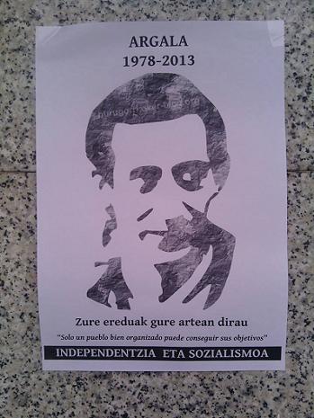 Ayer se cumplió un nuevo aniversario de la muerte de Jose Miguel Beñaran “Argala”. Pese a que el estado español en un alarde de hipocresía y cinismo remarque una y otra vez que no existe conflicto político ni expresiones multilaterales de violencia derivadas de éste, el caso es que ese estado colocó un explosivo debajo de su coche causándole la muerte en la explosión.