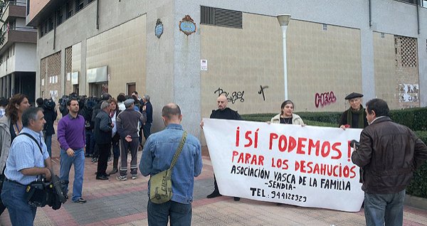 Desde Bildu exigimos que se paralicen todos los desahucios, que se dejen sin efecto, creando una moratoria mientras se cambia la ley. Y pedimos a todas las instituciones que se pongan al frente de la protesta en todos y cada uno de los desahucios que se vayan a producir.