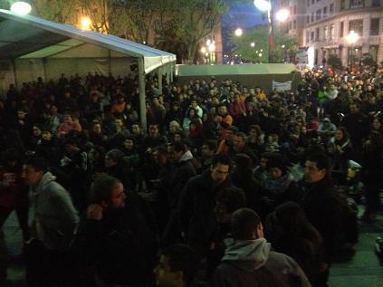 Desafortunadamente, consta-nos que várias unidades policiais se estám a deslocar para desenvolver um iminente desalojo violento do lugar. A brutalidade será a única forma do poder para ultrapassar a vontade popular de defender a juventude rebelde polo seu delito de autoorganizar-se para combater Espanha, o capital e o patriarcado.
