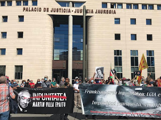 Concentración ante el Palacio de Justicia en Iruñea/Pamplona, el día en el que Rodolfo Martín Villa declara en la Querella Argentina.