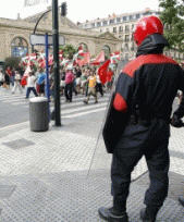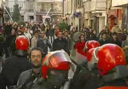 Última hora 15.30h. Informa Sare Antifaxista: Los disturbios se extienden por el barrio de Alde zaharra. Los manifestantes están respondiendo a las fuertes cargas de la Ertzaintza con piedras y cocteles molotov. Se confirma la detención de dos antifascistas.