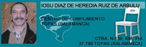 Iosu Díaz de Heredia fue detenido en 1986, tenía fecha de libertad con la condena cumplida para el 2009 pero tras la aplicación de la doctrina 197/2006 le fueron alargado la condena hasta el 2016. Su caso está en Estrasburgo y se suma a esos 70 presos y presas a los que se les ha aplicado la doctrina cuestionada por personas de diferentes ámbitos, una resolución que podría salir en breve y que la sociedad vasca ya ha sentenciado a lo largo del verano con la dinámica “Herritarron epaia”. Dicha dinámica culminará el próximo sábado en el Anaitasuna de Iruñea.