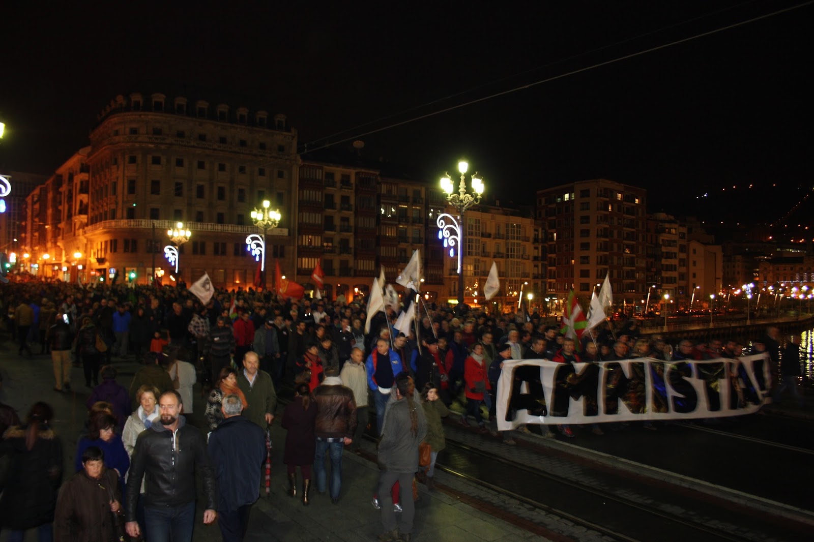 Gracias a todos y todas las que hoy habéis venido aquí, a Bilbo, a reivindicar la amnistía! De manera especial queremos agradecer también a quienes, en solidaridad con Euskal Herria, habéis venido desde otros pueblos. La solidaridad entre pueblos será imprescindible en este largo camino que nos queda por recorrer hasta la consecución de la amnistía.