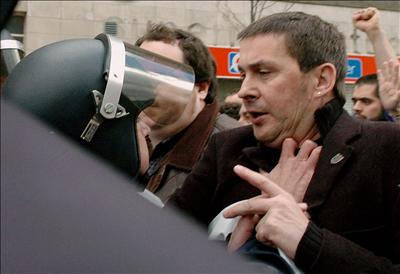 Los aparatos represivo y mediático se desenvuelven con total impunidad. Un juez de la Audiencia Nacional dicta prisión contra el portavoz de Batasuna, Arnaldo Otegi, por ni más ni menos que un delito de integración en ETA en grado de dirigente. Por su parte el fiscal general del Estado, Cándido Conde Pumpido, aseguró esta mañana, en referencia a la encarcelación de Otegi que, desde el punto de vista de la Justicia, "si ETA sigue actuando, no hay razón para que el Estado de Derecho no actúe de acuerdo con criterios de firmeza y energía". O lo que es lo mismo: si ETA no abandona las armas, encarcelamos a sus dirigentes... La lógica es extremadamente ridícula porque ni Otegi es dirigente de ETA ni el gobierno ha dado pasos concretos para abrir un proceso de paz con un mínimo de seriedad. Sin embargo ahi queda eso, la maniobra mediática se repite sin variación alguna.