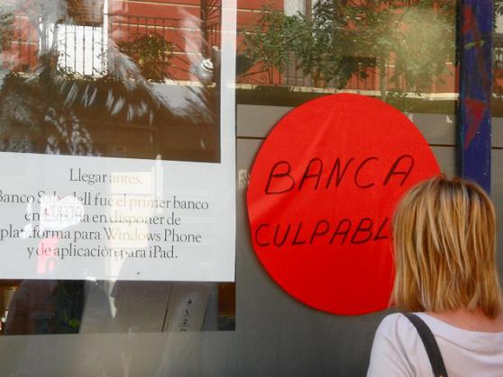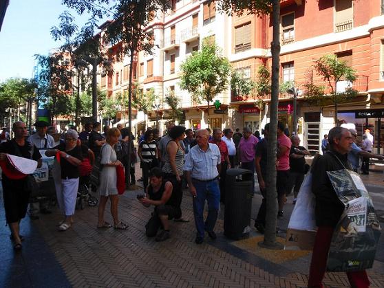Y con el fin de señalarles su culpabilidad, mediante un paseo por el centro de la ciudad, repartiendo hojas explicativas, han señalado los “puntos rojos” de la crisís, mediante la colocación de adhesivos donde mediante una frase, se justificaba porque se les señalaba.