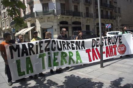 Queremos denunciar que este proyecto, además de ser innecesario y al servicio de una élite, con un enorme coste económico y sin ningún tipo de rentabilidad, sigue alimentado con dinero público el negocio de las constructoras, como COMSA y Mariezcurrena, a costa de continuar degradando y destrozando nuestra tierra. Por ello con esta acción hemos invitado a reflexionar a ésta útima informándoles sobre los enormes destrozos de esta obra y su inutilidad social, y hemos tratado de señalar su responsabilidad en este despilfarro destructor, sugiriéndoles la opción de abandonar las obras.