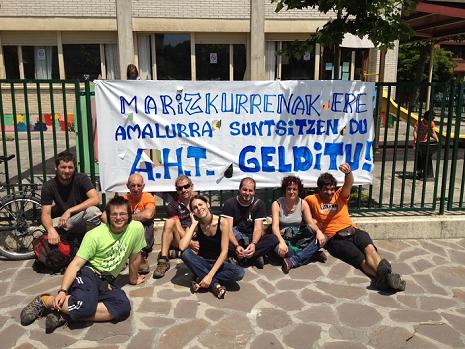 (Nafarroa) para denunciar la implicación de Marizcurrena S.L en las obras del TAV. Han acudido a la oficina de esta empresa en la Calle Mayor para entregar una carta en la que se les invita a abandonar las obras y al no haber nadie en la misma han dejado la carta en el buzón.Tambien han colgado una pancarta en la rotonda de salida hacia Elgorriaga.