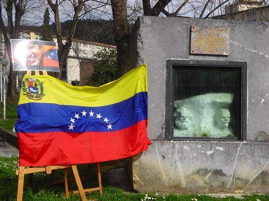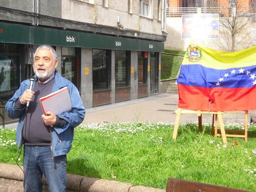 En Otxarkoaga, al lado de la estatua de Marx y Lenin, en un barrio popular y combativo, de la mano de Pa Ya Kultur Elkartea y Boltxe Kolektiboa se ha recordado y homenajeado a Hugo Chávez Frías, recientemente fallecido de un cáncer, ya veremos si inducido o no por el imperialismo, autentico enemigo de los pueblos y el conjunto de la humanidad.