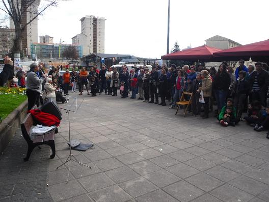 Se han reunido varias decenas de personas entre las cuales se podian distinguir rostros de personas muy vinculadas con el internacionalismo y la militancia revolucionaria en general. Trás la interpretacion a violín de "Txoria Txiori" y el "Aurresku" de honor ha dado comienzo el acto.