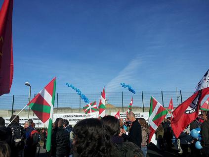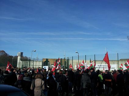 Con el fin desolidarizarse con los seis presos vascos, encarcelados en la cárcel francesa de Lannemezan, unas 200 personas se han personas en las inmediaciones del centro penitenciario, organizado por el colectivo Herrira, que en el estado francés es perfectamente legal.