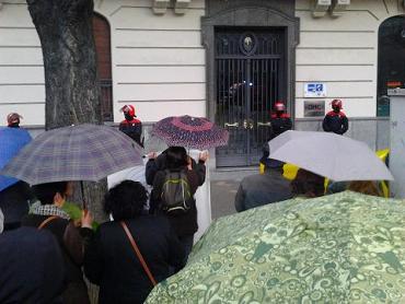 Alli hemos permanecido concentrados por espacio de 20 minutos entre gritos de ladrones y peticiones de dimisión de Yolanda Barcina y Enrique Maya, al final de la misma se ha hecho un llamamiento a participar de la mani del día 6 que partirá desde antoniutti a las 18h exigiendo la dimisión de la presidenta del gobierno de Navarra.