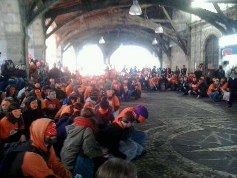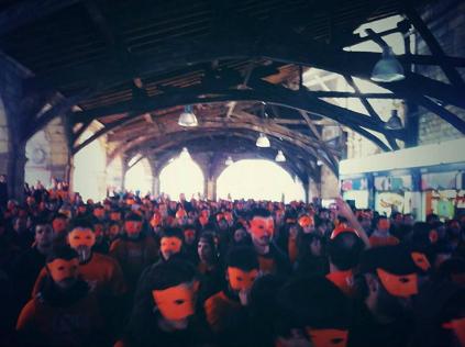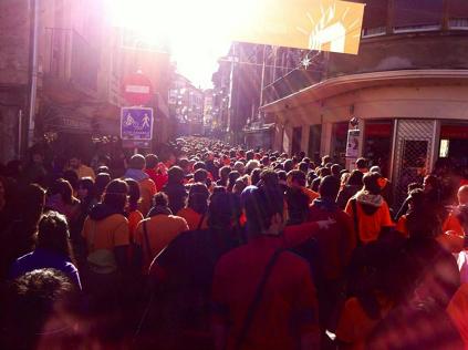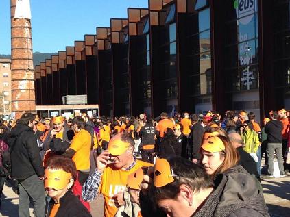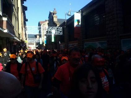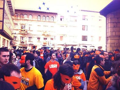 Anunciaron que aparecerian en Durango y solicitaron que miles de personas estuviesen arroopandoles con un antifaz y una camiseta color naranja y así ha sido. Si ayer se hablaba de un oleaje de solidaridad con l@s pres@s vasc@s, hoy pdemos decir lo mismo respecto a Irati Mujika, Idoya Iragorri, Goizane Pinedo y Unai Ruiz.