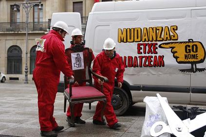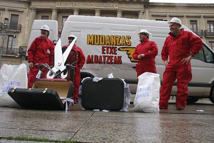 Gaur jendearen eskari zabalari erantzunez, Nafarroako Foru Diputaziora etorri gara bolondres gisa, nafar jendarteak nahi ez dituen gauzak bertatik ateratzeko, Barcina anderea ere zerrenda horretan dago. Egon dadila lasai Barcina, alderkeriak jota badago trasteak mugitzeko nagi, geuk lagunduko diogu mudantza di-da batetan egiten.