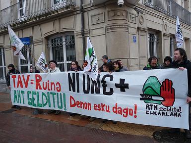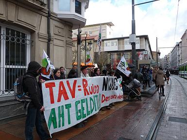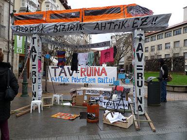 Asi mismo Mugitu Mugimendua, movimiento de desobediencia civil contra el TAV, ha realizado en la calle una pequeña protesta en forma de representación bajo un "viaducto" de la obra del TAV, para visualizar que mientras despilfarran millones de euros con el TAV y en un contexto de fuertes recortes sociales, un importante porcentaje de personas nada en la precariedad y en la exclusión social.