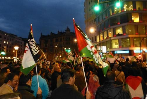 Convocada por la diáspora saharaui en Bizkaia y en colaboración con la delegación saharaui en Euskadi se cientos de personas tomaron parte en la manifestación en solidaridad con los presos políticos saharauis de Gdeim Izik y en repudio a las condenas llevadas acabo por las autoridades Marroquíes, que son contrarias a las leyes internacionales.