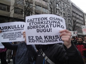 Las críticas y las consignas de esta marcha eran la política económica de Rajoy y de Urkullu, ambas caracterizadas por los recortes