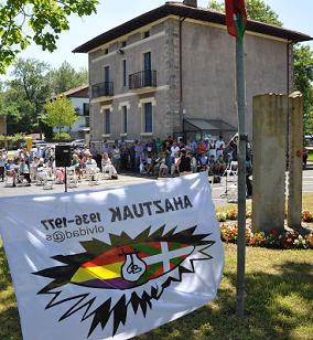 Como en anteriores ediciones en la pequeña plaza en la que se encuentra el monolito colocado en el a ño 2008 por la asociacion de victimas del régimen franquista Ahaztuak 1936-1977 se congregaron algo más de cien personas ente las que se encontraban numerosos familiares de represaliados del pueblo.