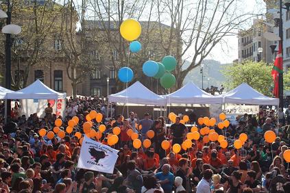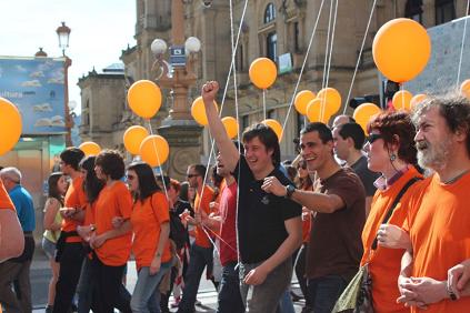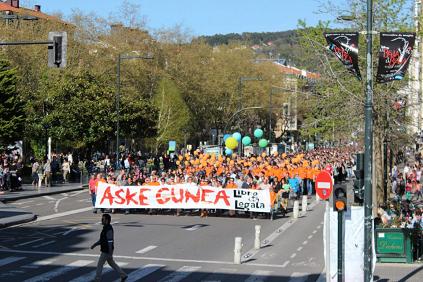 Unas 10.000 personas recorrieron el entro de Donostia convocadas por Eleak para apoyar a la juventud vasca y en especial a los 9 jóvenes condenados por la Audiencia nacional española por el mero hecho de hacer labor política dentro de una organización como Segi, que se limitaba a la actividad política.