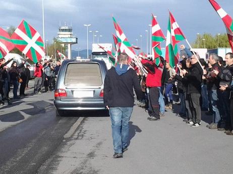 Por la mañana, el ataud llegó a la terminal de carga del aeropuerto de Sondika, allí mismo y tras cubrir el féretro con una ikurriña, bailarle un aurresku de honor a pie de pista y después de que sus familiares depositaran un ramo de flores fué llevado como decimos a Galdakao.