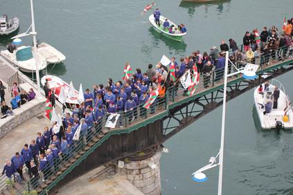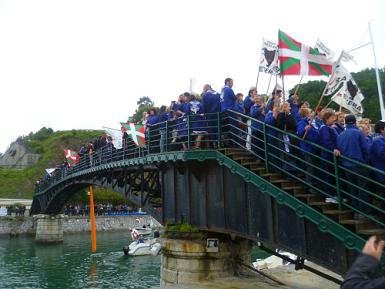 Emoción cuando a media tarde ha habido una concentración por los presos que se ha desarrollado en el mismo puente, con Urtza presente y un monton de gente vestida con el traje de arrantzal. Varios botes y barcos han apoyado la concentración desde la ría que desemboca en Ondarroa.