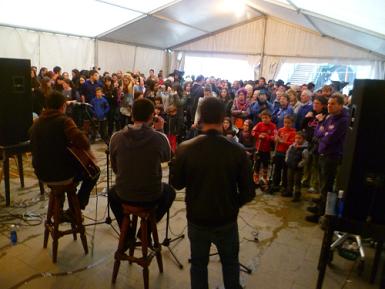 El tenso tiempo de espera no ha hecho que decayera el ánimo de la gente y se han podido escuchar canciones como ‘Lepoan hartu ta segi aurrera’ o bertsos de Miren Amuriza.