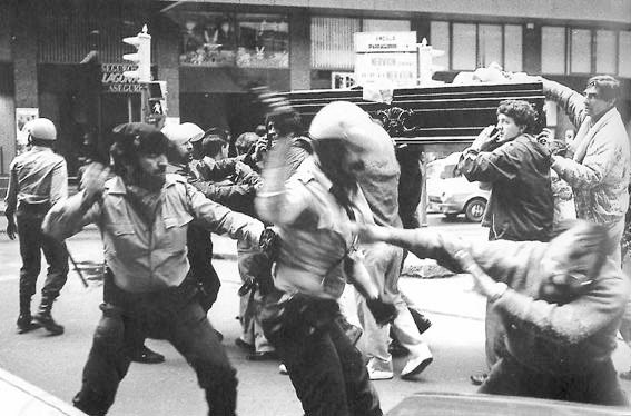 Hileta-elizkizuna egiten ari ziren bitartean, Ertzaintzak hildakoen senideen aurka oldartu zen hilkutxak hil-autoetatik atera ez zitzatela bermatzeko.