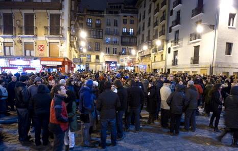 Posteriormente unas 600 personas se concentraron en la Plaza del Ayuntamiento para protestar por el cierre de Ateak Ireki, ignorando la prohibición que pesaba sobre este ecto por parte de la delegación del gobierno español. Si que ha aparecido la policía española, pero tras unos momentos de cierta tensión y duda, se han marchado por donde han venido.