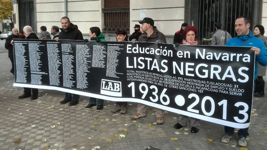 La obsesión ideológica por controlar la enseñanza pervive en personas como el Consejero Iribas, miembro de una secta conservadora, o la Presidenta Barcina". Según denuncia LAB, el propio Ministro Wert hizo apología del adoctrinamiento cuando dijo que el objetivo de la LOMCE era españolizar a los alumnos y alumnas.