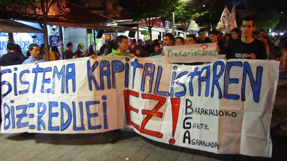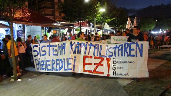 Barakaldoko Gazte Asamblada celebró el pasado fin de semana una manifestación contra el capitalismo y las graves consecuencias que este sistema social injusto acarrea.