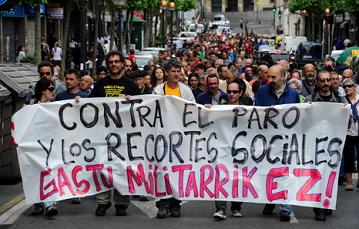 Cerca de mil personas pertenecientes a las plantillas de las principales empresas de Ezkerraldea; junto a personas con empleos precarios o en paro; o pensionistas y familias inmersas en procesos de desahucio; además, del conjunto del tejido asociativo de Ezkerraldea conformado por diferentes colectivos sociales y sindicales de Ezkerraldea han desarrollado una marcha contra el paro, los recortes sociales y el gasto militar por las principales calles de los municipios de Sestao y Barakaldo.