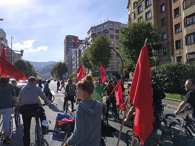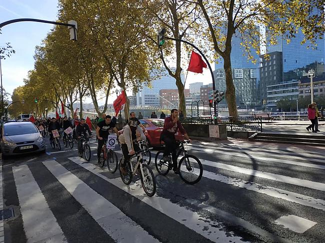 El sábado 3 de noviembre, por la mañana, una marcha ciclista recorrió las calles de todo Bilbo lanzando a los cuatro vientos la reivindicación de un nuevo modelo para nuestra ciudad y diciendo alto y claro que la MTV no es bienvenida. Al finalizar el recorrido, se recompensó a los participantes con una chocolatada popular que nos ayudó a todos a recuperar fuerzas de cara a la manifestación de la tarde. La marcha partía de la Plaza Eliptika e iniciaba su camino hacia el Ayuntamiento entre fuertes gritos de “PiztuBilbo, Itzali MTV”, “MTV kanpora” o “Kultura herritik eta herriarentzat”. Un Bilbo encendido caminaba sin miedo, contra y más allá de la MTV, contra y más allá del grotesco espectáculo del capital. Al llegar al ayuntamiento, una vez más, recibimos el hostigamiento tanto de la Ertzaintza como de la Policía Municipal cuyos agentes nos empujaron y golpearon, llegando incluso a retener a un compañero. Pese a todo, demostramos que su represión no podía hacernos frente y gracias a la firmeza y entereza de los asistentes, el acto final se llevó a cabo. Desde PiztuBilbo, Itzali MTV queremos dar las gracias a todos aquellos que, pese a la asfixiante presencia policial de estos días, participaron tanto en la manifestación como en el resto de actos convocados durante la semana.