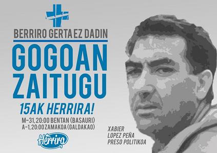 Etxerat elkartearen eskutik Xabier López peñaren heriotza konfirmatzen dugu. Beraien senideek dioten bezala, gaueko 1:00etan hil da eta ospitalizatu zutenetik beraien senide eta gertukoekiko eman den ixilpekotasunarekin jarraituz, gaur eguerdi lo 13:00etan izan dute Xabierren heriotzaren berri, bera bisitazera joan diren unean bertan.