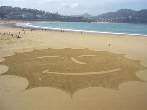 Por ello, hoy, miembros de Eguzki hemos procedido a pintar un gigantesco sol antinuclear – casi 2.000 m2- en la playa de La Concha, para exigir el cierre inmediato de Garoña y por que no queremos más Fukushima.
