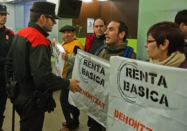 Asimismo, han portado una pancarta con el lema “Derecho a la renta básica” y han coreado consignas como “No falta dinero, sobran ladrones”, “Renta básica, derecho universal” o “Renta básica es un derecho, no es una ayuda”.
