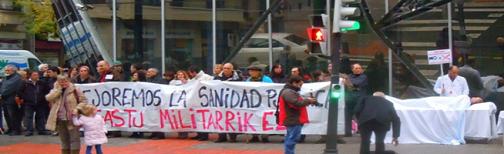 Los colectivos han optado por este emplazamiento por considerar insuficiente la asignación presupuestaria del Gobierno Vasco para garantizar una sanidad pública de calidad ya que este año 2012 se ha introducido un recorte de 140 millones de euros.