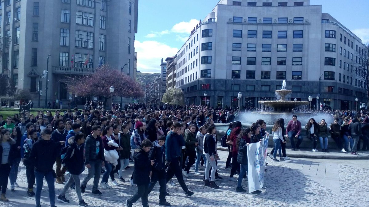 Gran seguimiento de la jornada de huelga estudiantil en todo Hego Euskal Herria, l@s estudiantes han vaciado las aulas y han salido a la calle en las principales ciudades de los cuatro herrialdes.