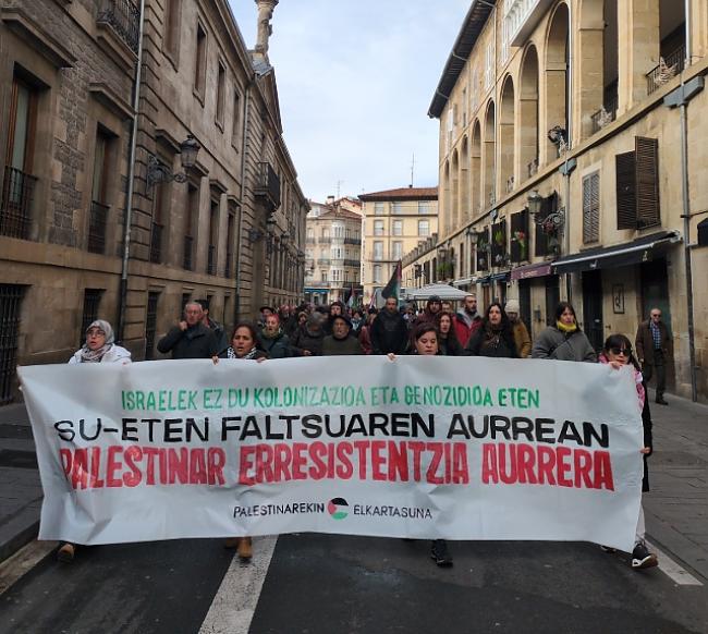 Asteburuan, hainbat mobilizazio izan dira Euskal Herriko hiriburuetako eta zenbait herrietako kaleetan, “Su-eten faltsuaren aurrean, Palestinar Erresistentzia aurrera” lelolotzat hartura.