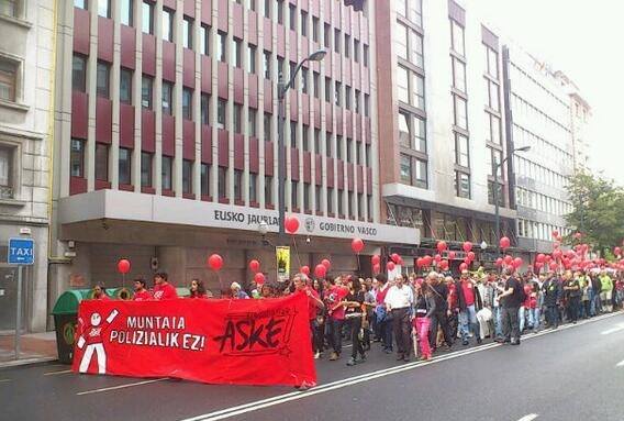 Es de recordar, las contundentes actuaciones de las fuerzas policiales vascongadas en las huelgas generales convocadas en Hego Euskal Herria y que terminaron con un sinfín de detenid@s, herid@s y personas que no pudieron llevar a cabo sus labores de piquetes informativos. La contundencia mostrada por la policía, recordó a tiempos pásados en los que el derecho a huelga no existía.