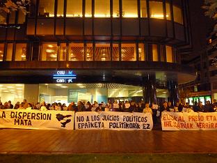 Se celebró una concentración ante la sede del PP en Iruñea para denunciar la situación que viven los presos políticos vascos en la prisión del Sevilla II, donde desarrollan desde el 28 de octubre una huelga de hambre.